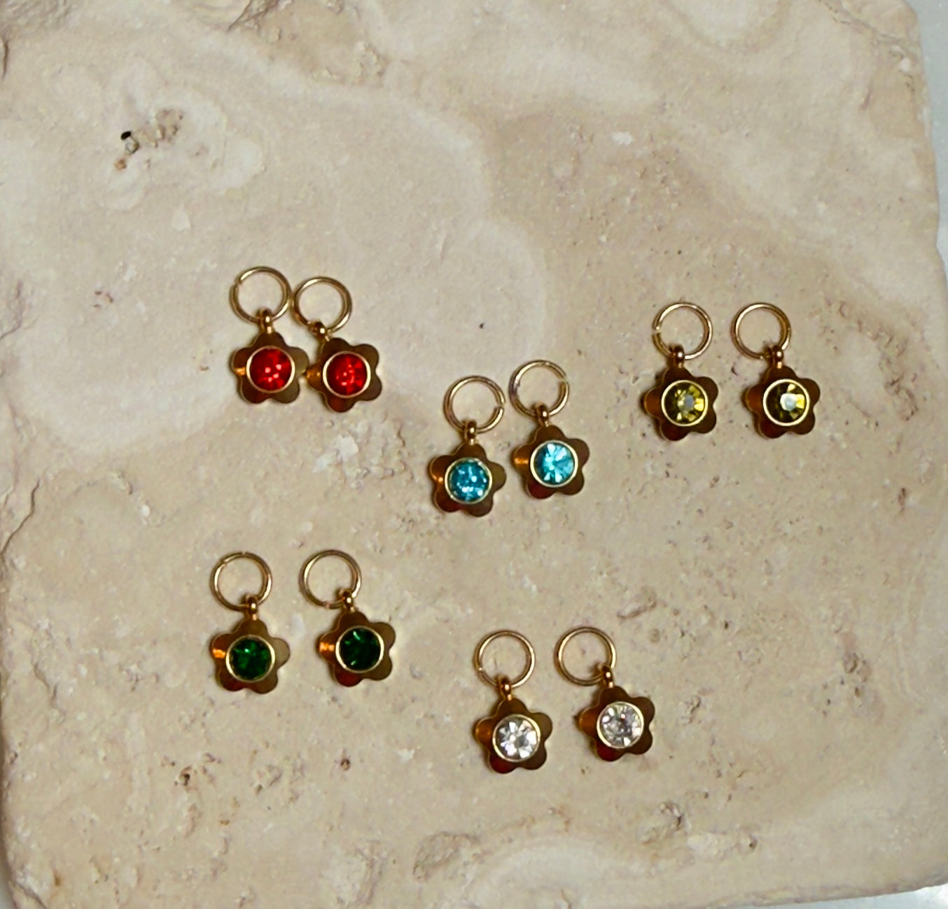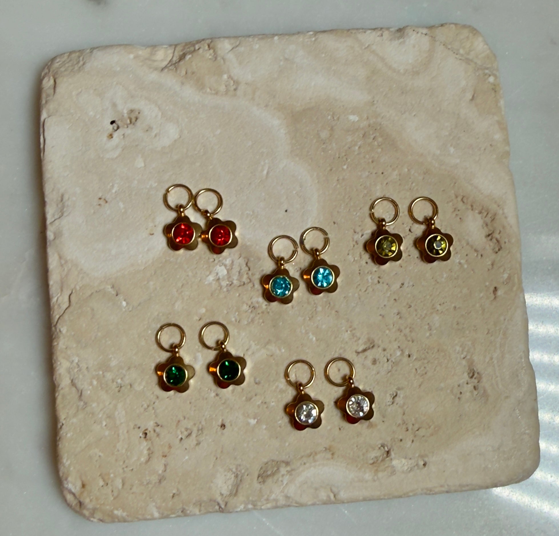 Flower Crystal Charm / Stainless Steel